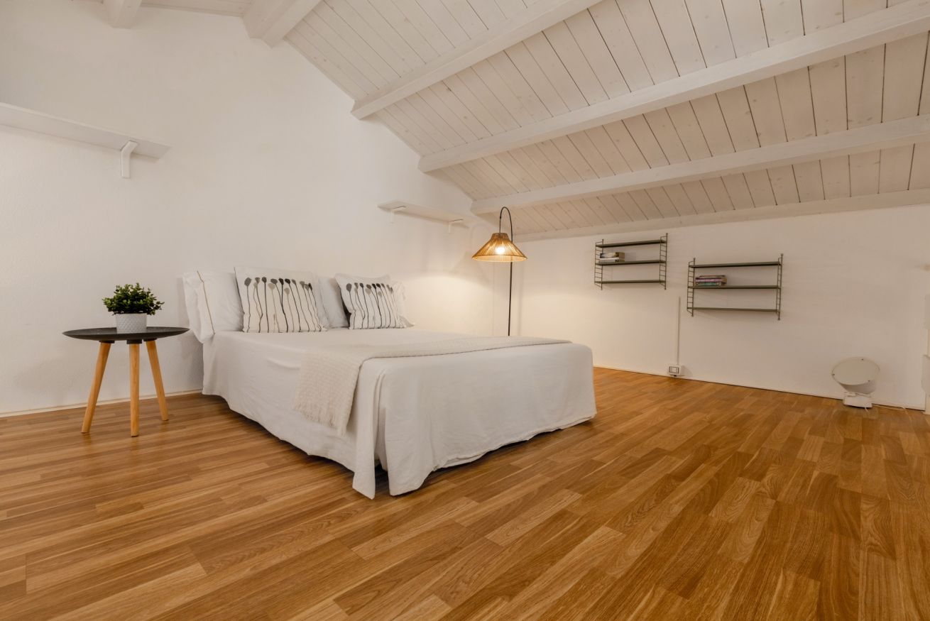 The property is completed by a loft furnished with a sofa bed and everything you may need to relax, a small laundry area equipped with a washing machine, and two terraces with outdoor furniture, from which you can admire the characteristic roofs of the Villanova district.