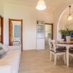 Si sviluppa su un’unico livello e all’ingresso presenta un soggiorno allestito con divano letto singolo, un angolo cottura attrezzato e una piccola area pranzo con cammino.