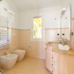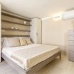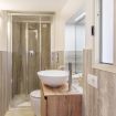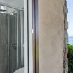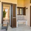 Al piano rialzato, l’ingresso principale introduce in un ambiente intimo e raffinato. Qui si trovano la camera padronale, con bagno privato e armadiature su misura, e una camera tripla, con due letti singoli e un terzo letto estraibile (soluzione pensata per bambini e adolescenti, confortevole anche per adulti), servita da bagno adiacente con doccia. Al piano terra, una seconda camera matrimoniale con bagno privato e porta finestra con accesso diretto alla corte interna (non è presente una finestra tradizionale), dotata di finestrella nel bagno per l’aerazione naturale. Un ambiente intimo e riservato, che unisce comfort e continuità con gli spazi esterni della casa. Una doccia esterna coperta, la terrazza fronte mare e il giardino con accesso diretto al mare ampliano la dimensione abitativa verso l’esterno, in continuità con la natura.