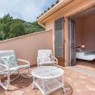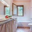 Il primo piano è invece dedicato interamente alla zona notte con 4 camere da letto matrimoniali e due bagni con doccia. Le camere si affacciano su una terrazza che sovrasta la piscina e dalla quale è possibile ammirare il verde della proprietà e il mare all’orizzonte.