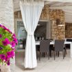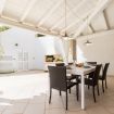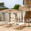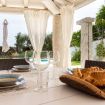 Gli arredi, compresi i tendaggi interni e quelli esterni del porticato, sono il fiore all’occhiello della Villa, e richiamano con gusto la tradizione sarda rivista in chiave moderna, dove spiccano i colori del mare e della Sardegna.