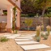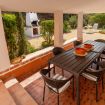 Gli spazi esterni sono il vero punto di forza: due portici arredati affacciati sul giardino, angoli ideali per rilassarsi all’ombra o godersi colazioni lente e cene sotto le stelle. Il giardino, semplice ma ricco di personalità, riflette lo spirito mediterraneo della villa, con i suoi profumi, i suoi colori e il suo ritmo naturale.