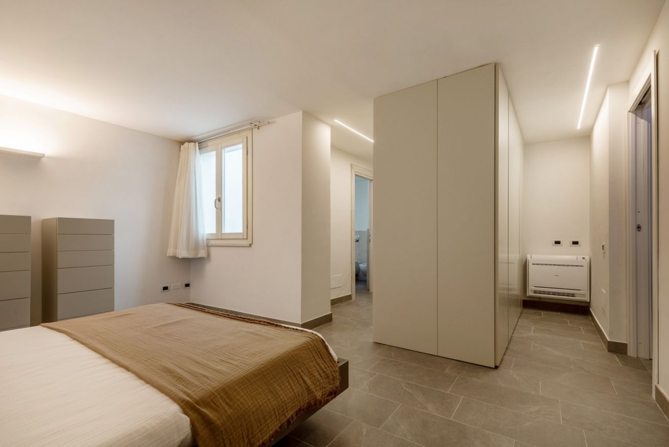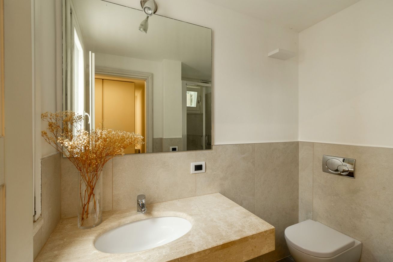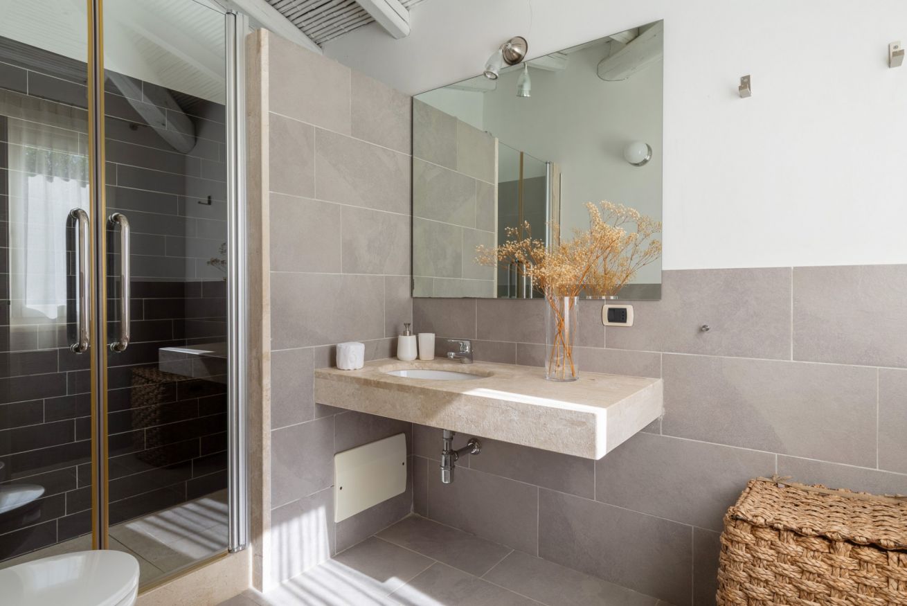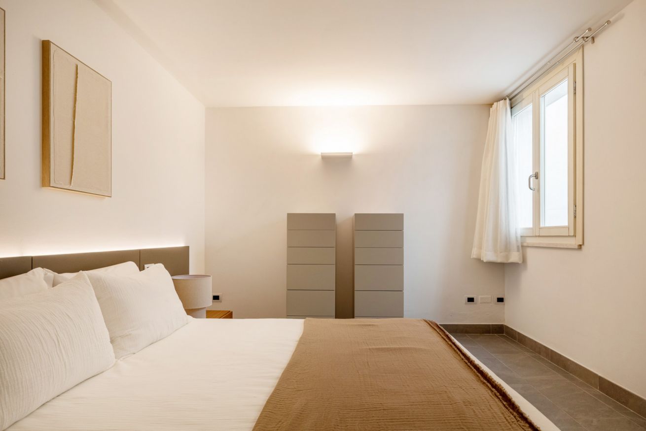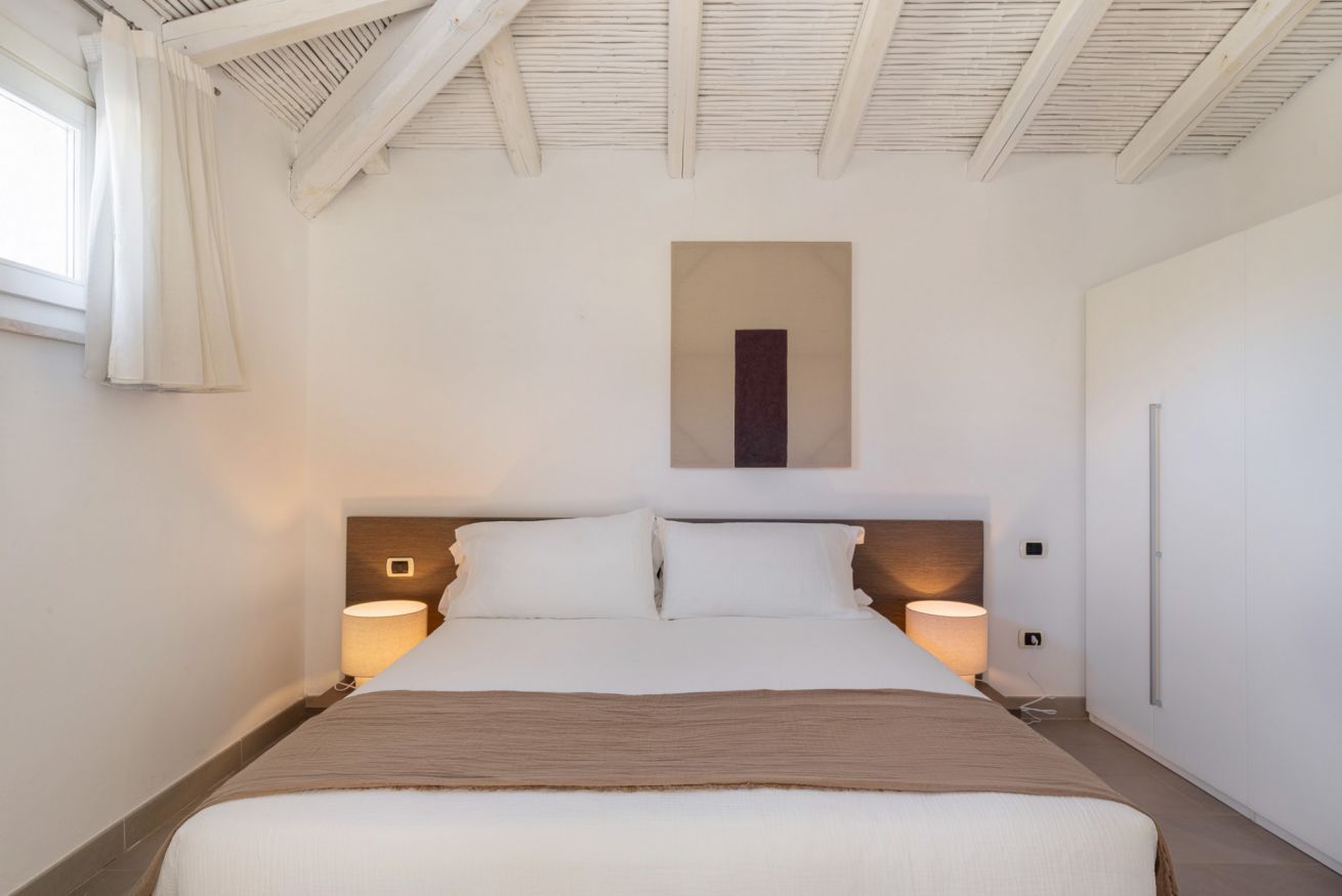 Al primo piano si articola la zona notte con quattro camere da letto di cui due matrimoniali con bagno completo in camera, e altre due camere matrimoniali con bagno esterno in comune con doccia. Dalle finestre presenti in tutte le camere e in particolare dalla terrazza arredata della camera padronale, è possibile ammirare un panorama mozzafiato, in cui mare e montagna si incontrano.